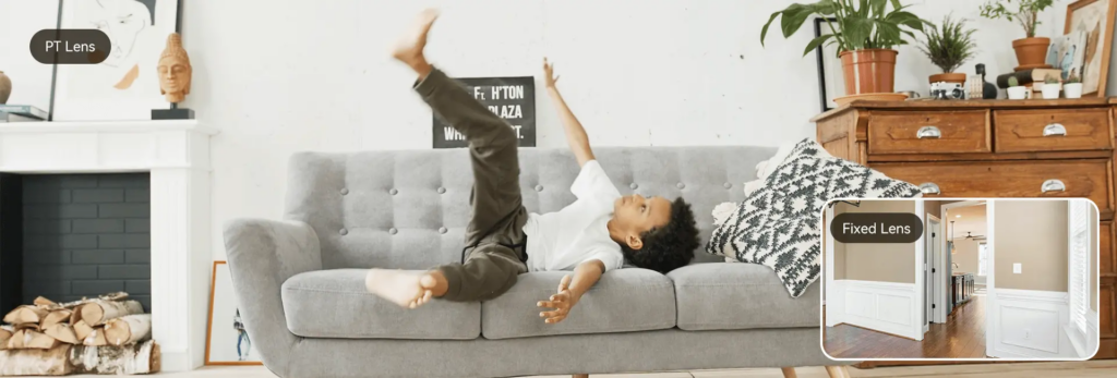 Asegura 2 zonas a la vez. Además de el lente PTZ normal, Ranger Dual tiene una lente fija en la parte inferior que te permite monitorear dos áreas a la vez.