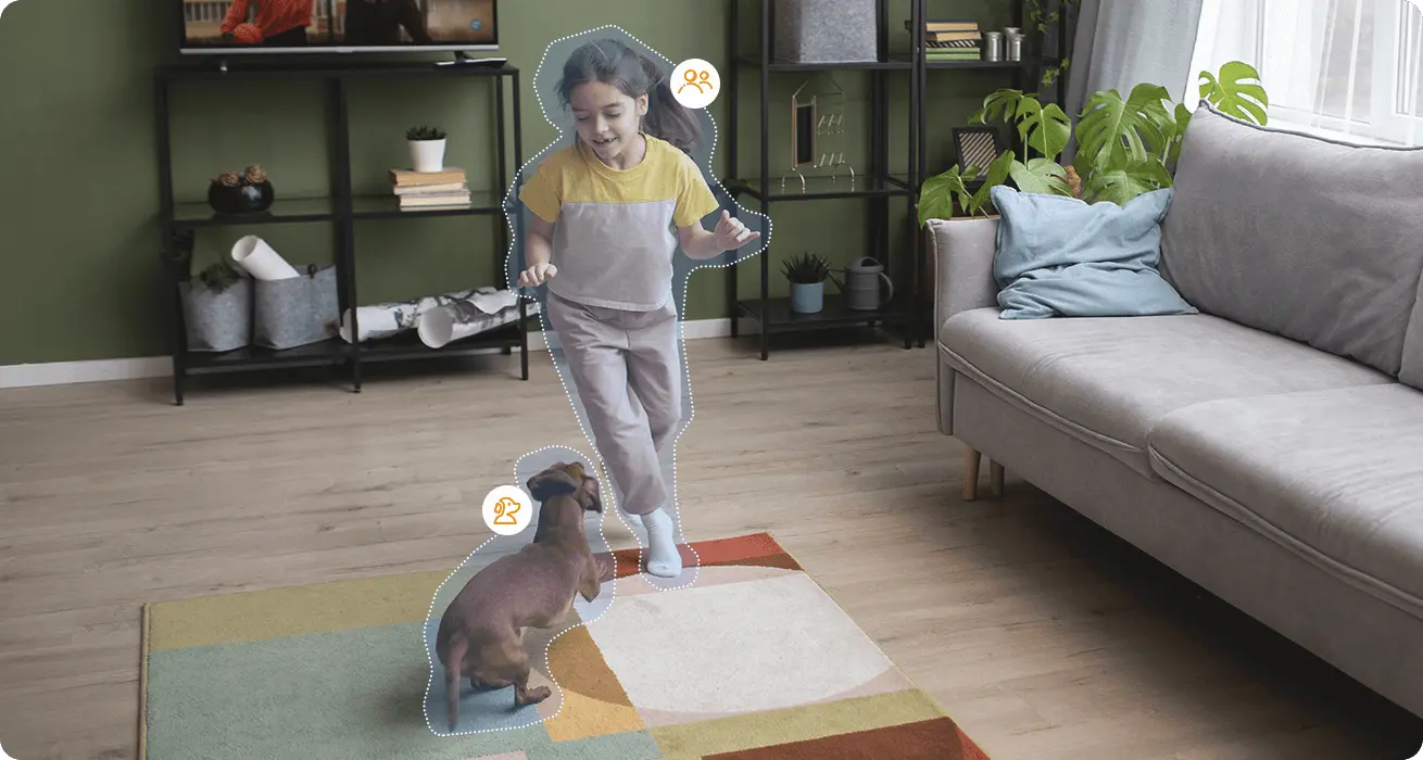 Detección precisa de humanos y mascotas. Con el apoyo de IMOU SENSE™, la IA recientemente actualizada puede mejorar efectivamente la precisión de la detección de personas y mascotas, y puedes rastrear de manera inteligente al objetivo; cuando se activa un evento, además de enviar información al teléfono del usuario, el dispositivo también emitirá una alarma.